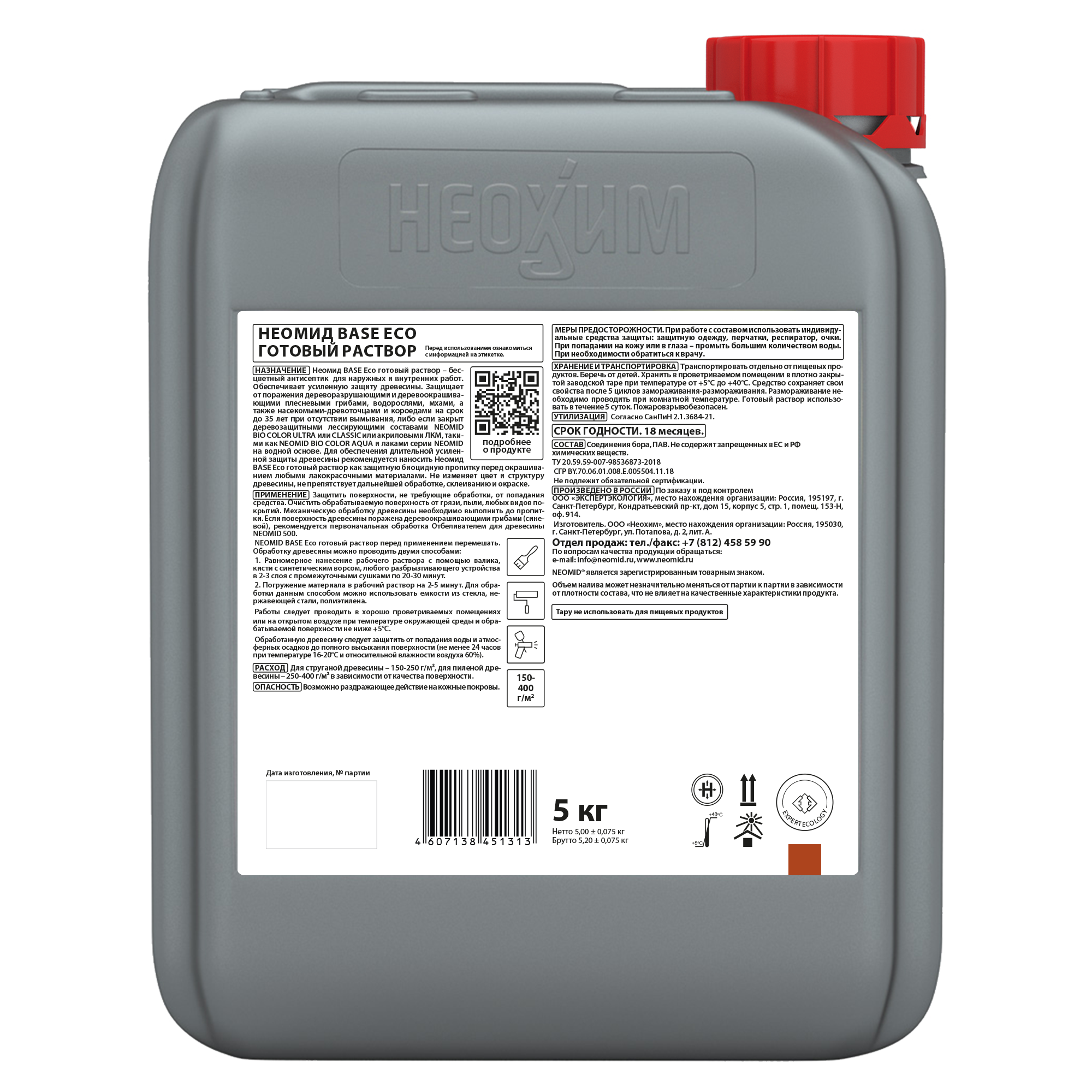 Неомид BASE Eco готовый раствор» – бесцветный антисептик для наружных и внутренних работ. Обеспечивает усиленную защиту древесины. Защищает от поражения дереворазрушающими и деревоокрашивающими плесневыми грибами, водорослями, мхами, а также насекомыми-древоточцами и короедами на срок до 35 лет при отсутствии вымывания, либо если закрыт деревозащитными лессирующими составами NEOMID BiO COLOR ULTRA или CLASSIC или акриловыми ЛКМ, такими как NEOMID BiO COLOR AQUA и лаками серии NEOMID на водной основе.