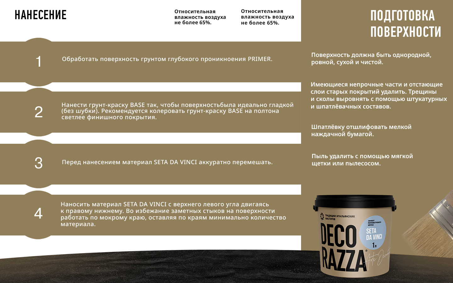 3. Перед нанесением материал Seta da Vinci аккуратно перемешать.