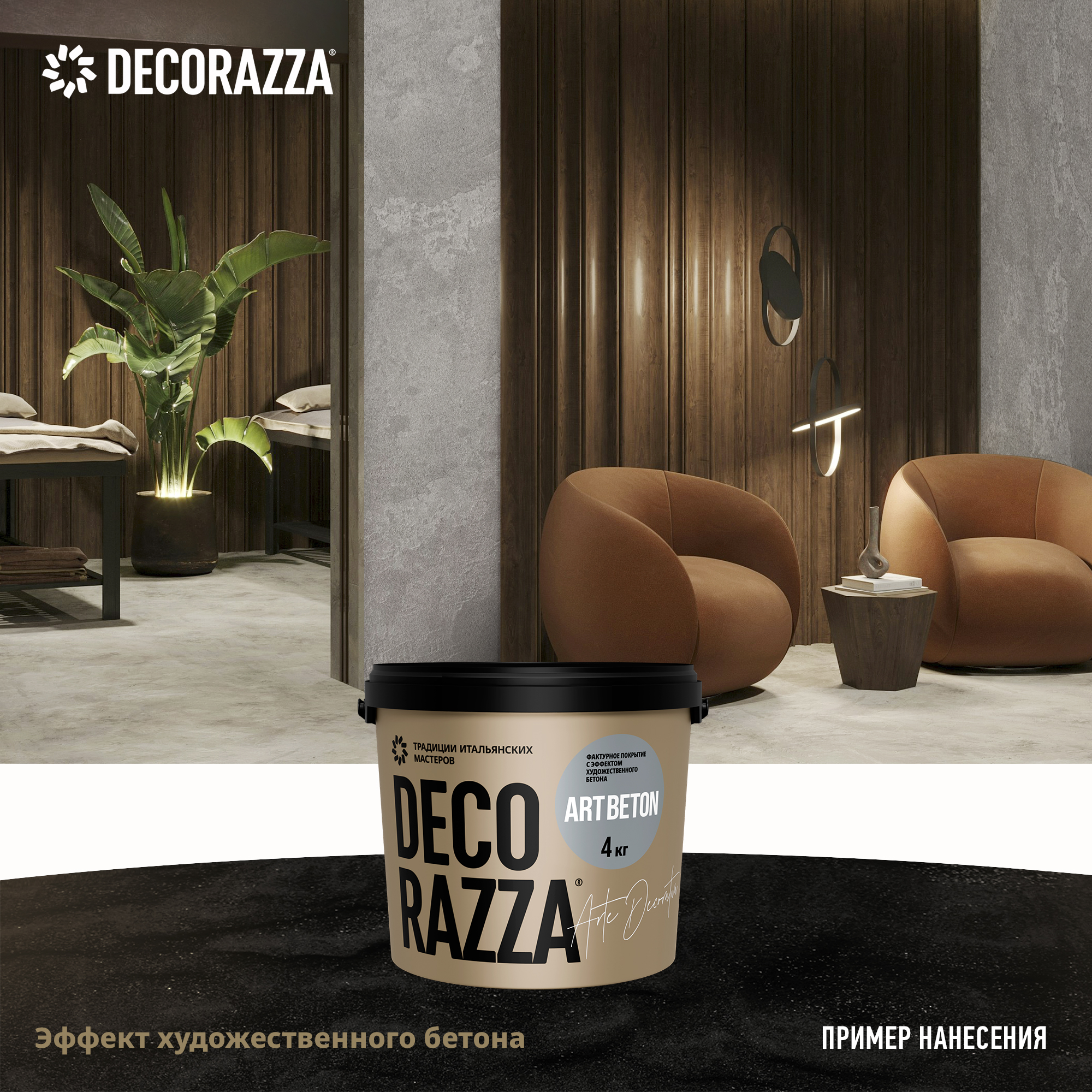 Купите у нас: Фактурное покрытие ART BETON - Декоративная штукатурка, имитирующая фактуру гладкой или необработанной бетонной поверхности от производителя Decorazza!