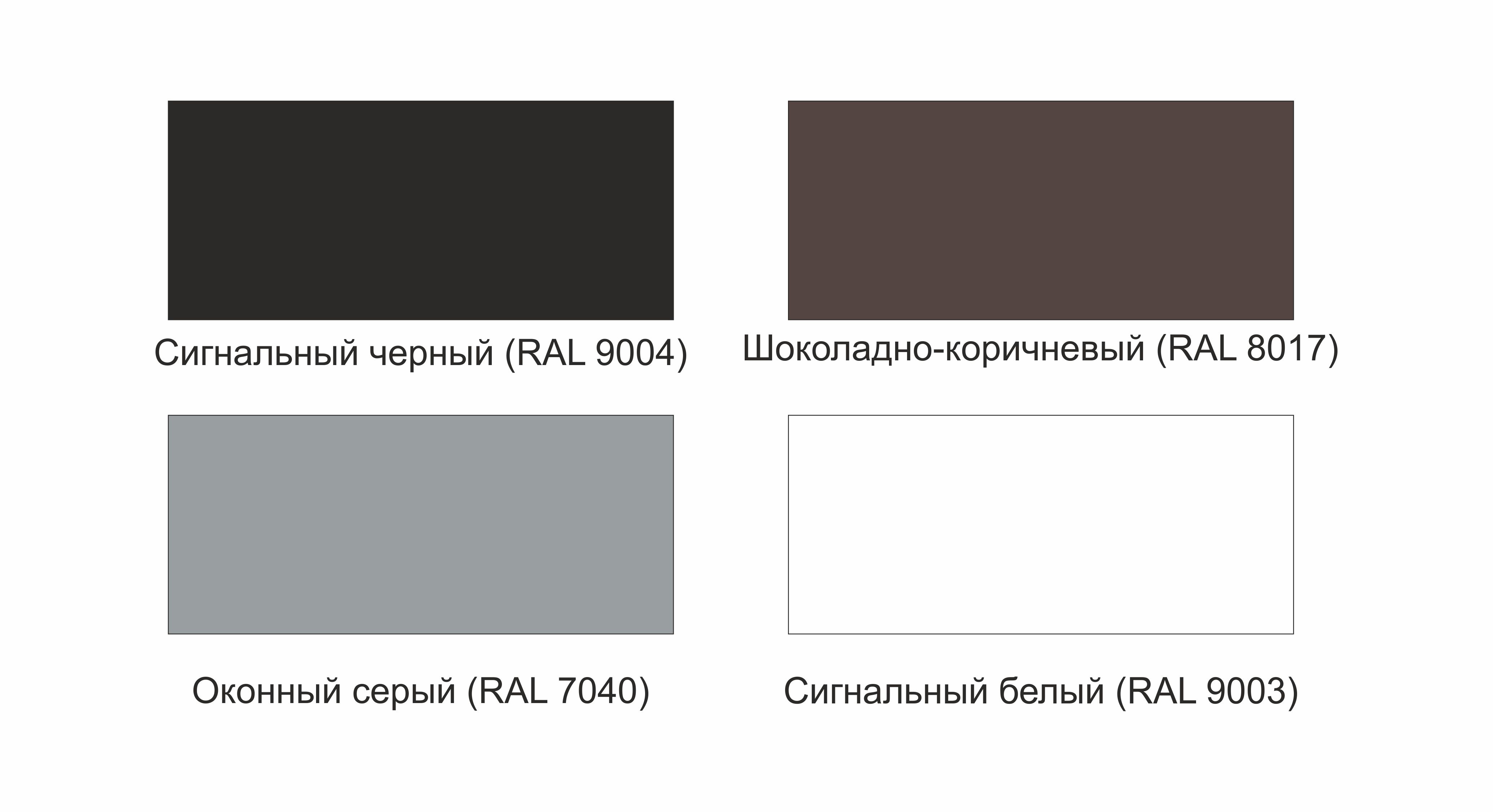 Названия цветов: | RAL- цвета по заказу, срок готовности от 30 мин, компьютерная колеровка по согласованию. |
