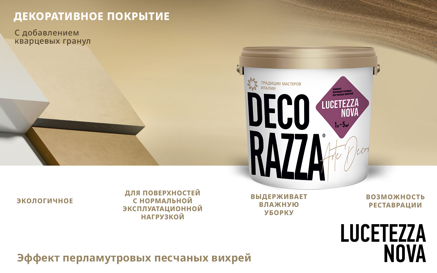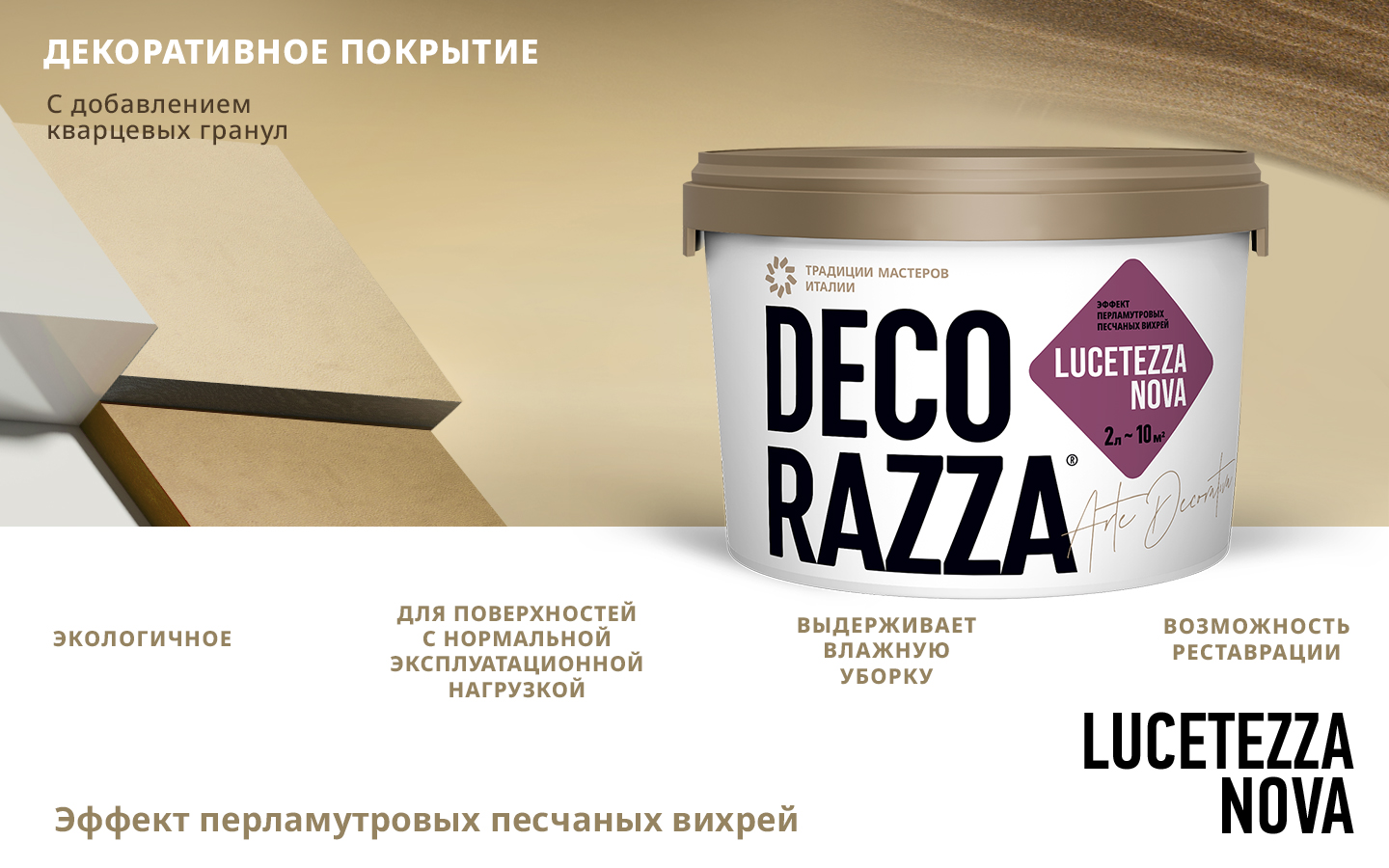 Купите у нас: Краска декоративная LUCETEZZA ALLUMINIO - Декоративная краска с перламутром и кварцевыми частицами от производителя Decorazza!
