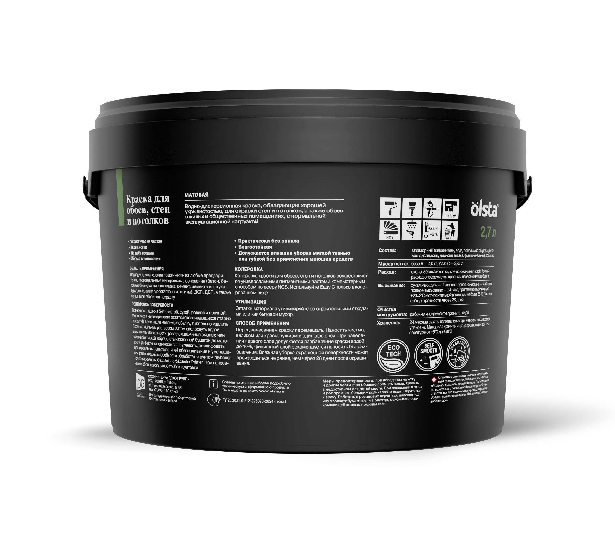 Купите у нас: Краска для стен, обоев и потолков - Краска без запаха для всех видов обоев. от производителя OLSTA!
