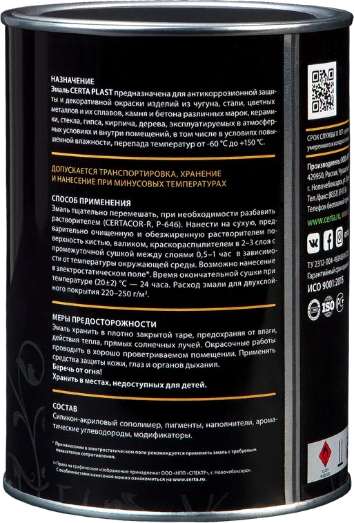 Эмаль CERTA-PLAST с глянцевым эффектом применяется для декоративной отделки и защиты от коррозии. Эффект "глянец" делает покрытие блестящим. Наносится на металлические поверхности: железо, сталь, цветные металлы и их сплавы.