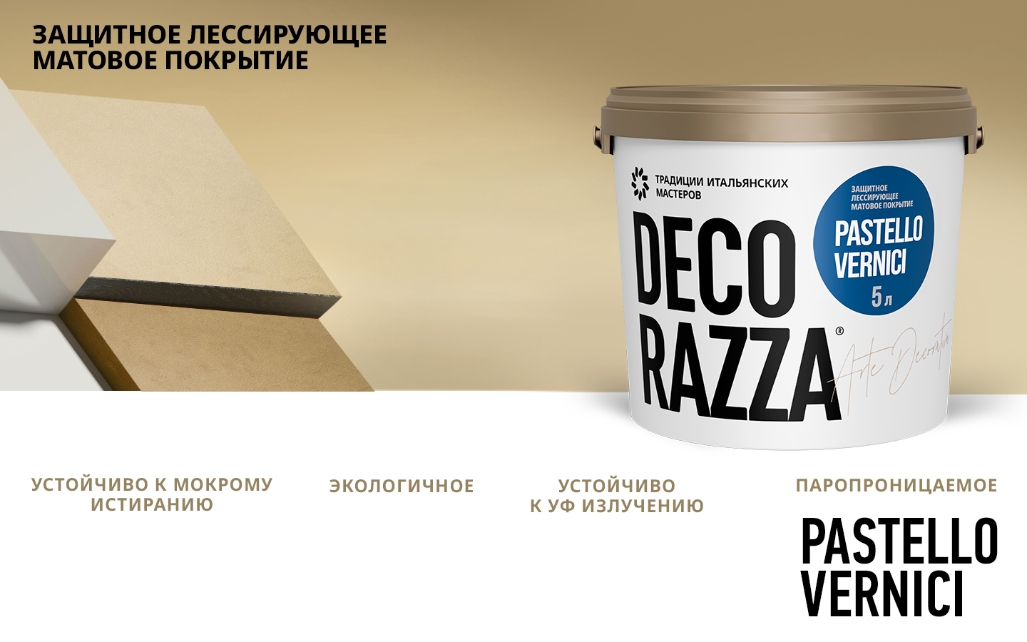 Купите у нас: Лессировка матовая PASTELLO VERNICI - Защитная декоративная лессировка для фасадов и интерьеров от производителя Decorazza!
